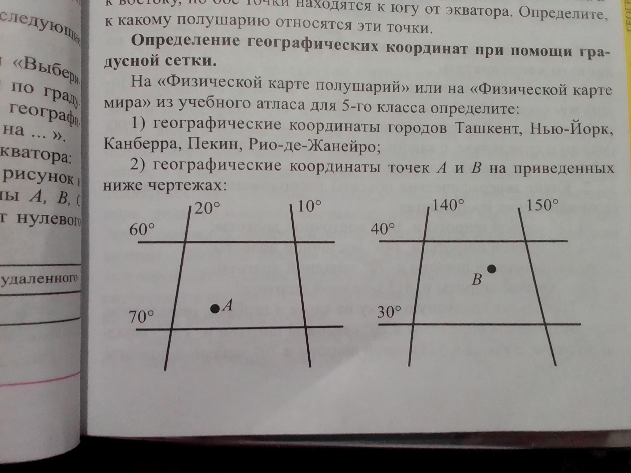 2) Географические координаты точек А и В на приведенных ниже чертежах: