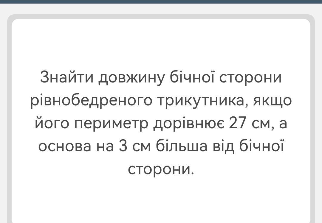 і ділимо на 3 щоб отримати довжину однієї бічної сторони