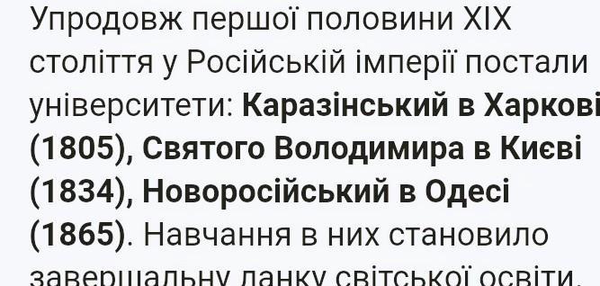 Назвіть навчальні заклади які діяли на українських землях які входили до складу російської імперії