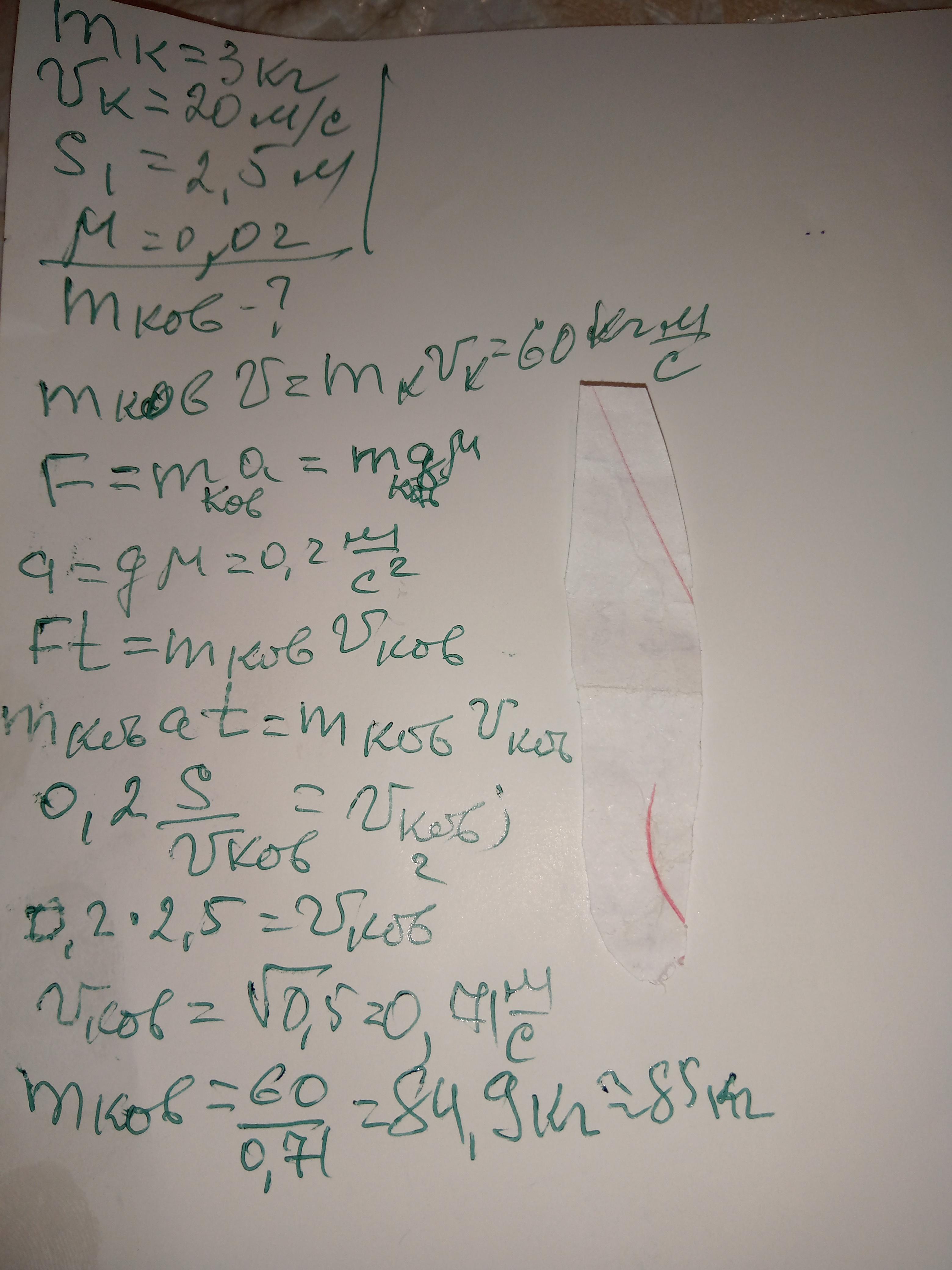 Ковзаняр, що кинув горизонтально камінь масою 3 кг зі швидкістю 20 м/с, відкотився на 2,5 м. Визначте масу ковзаняра, якщо коефіцієнт тертя ковзанів об лід дорівнює 0,02.