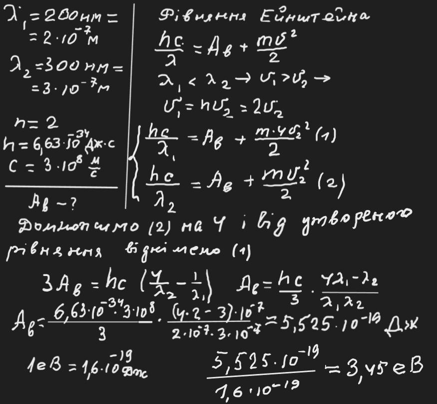 300 нм максимальна швидкість фотоелектронів змінилася в два рази.