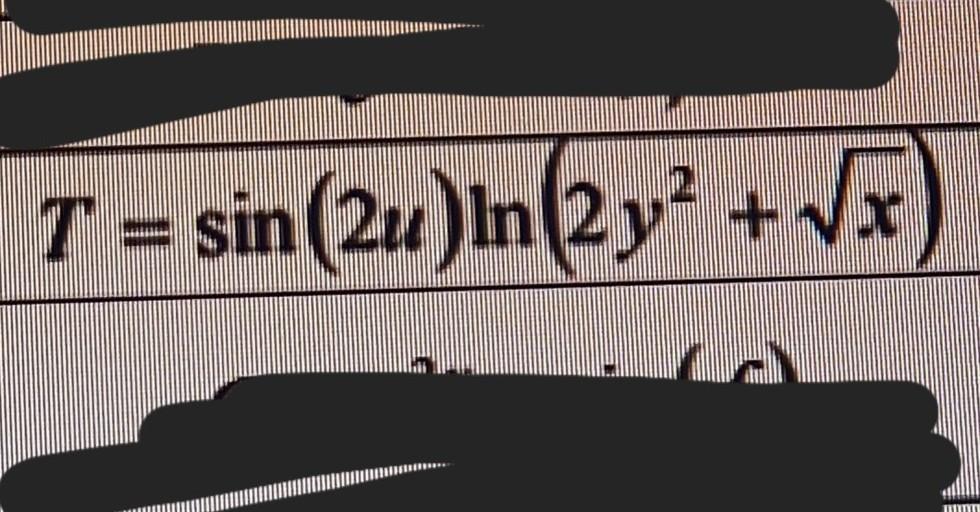 T = math.sin(2*u)*math.log(2*y**2 + math.sqrt(x))