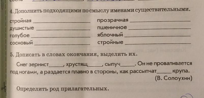 Снег× (какой?)→ зернистый, хрустящий, сыпучий (муж.род). Он не проваливается под ногами, а раздается плавно в стороны, как рассыпчатая ←(какая?) крупа× (жен.род).