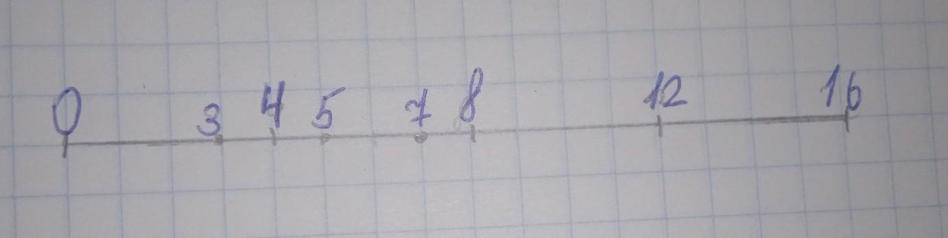 від 16 віднімаєш 4 рази по 4 і кожен раз записуєш на відрізок і так як там 4 клітинки треба просто на 1 більше або менше щоб записати числа 3,5,7