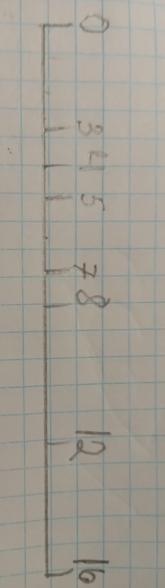 кінцем запишіть число 0, а над іншим — 16. Поділіть