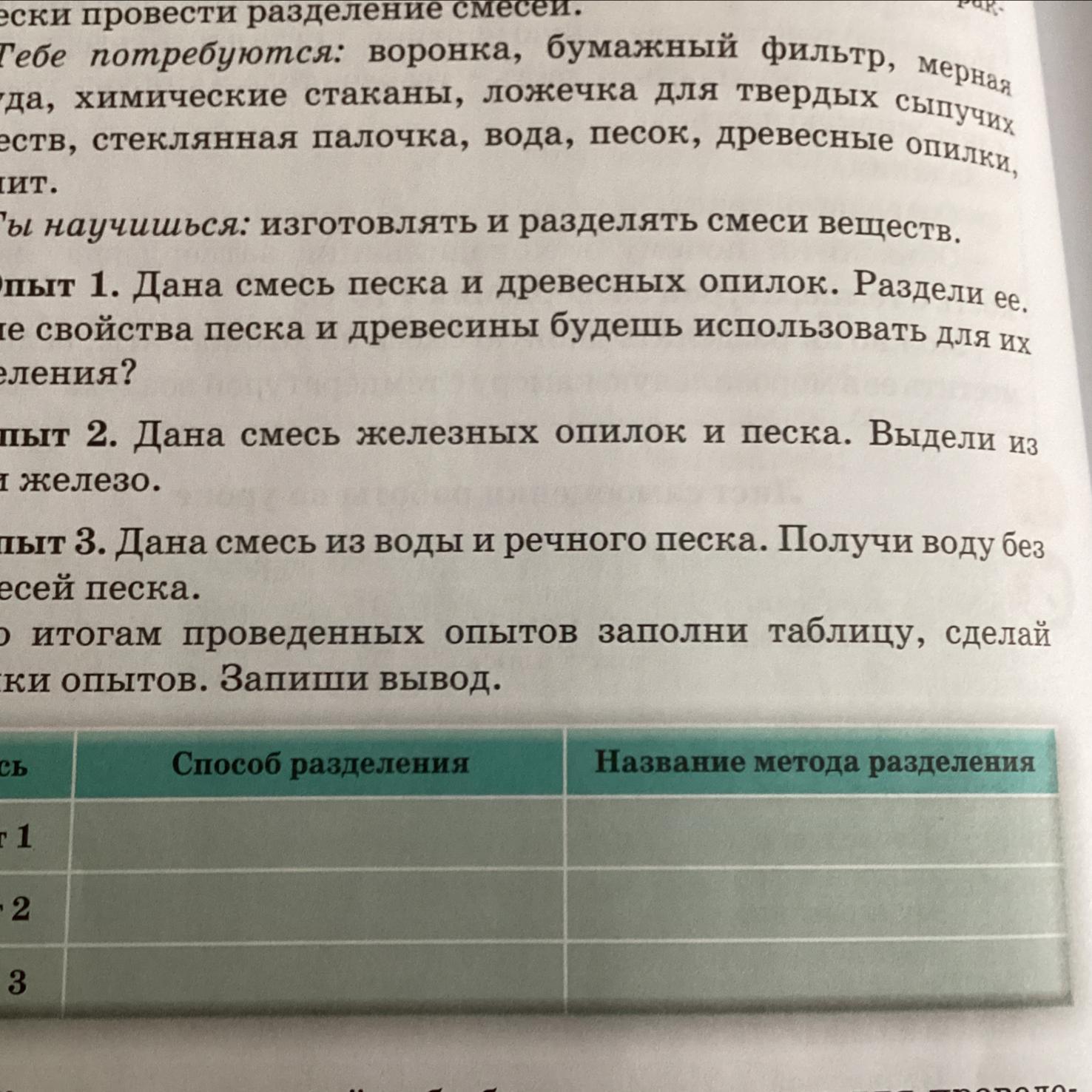 Ты научишься: изготовлять и разделять смеси веществ.