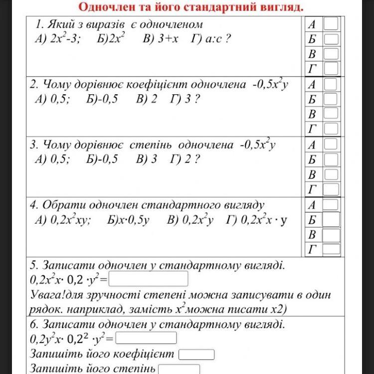 6) 0,2y^2x * 0,2^2 * y^2 = 1/5y^2x * (1/5)^2 * y*2 = 1/5y^2x * 1/25y^2 = 1/125xy^4