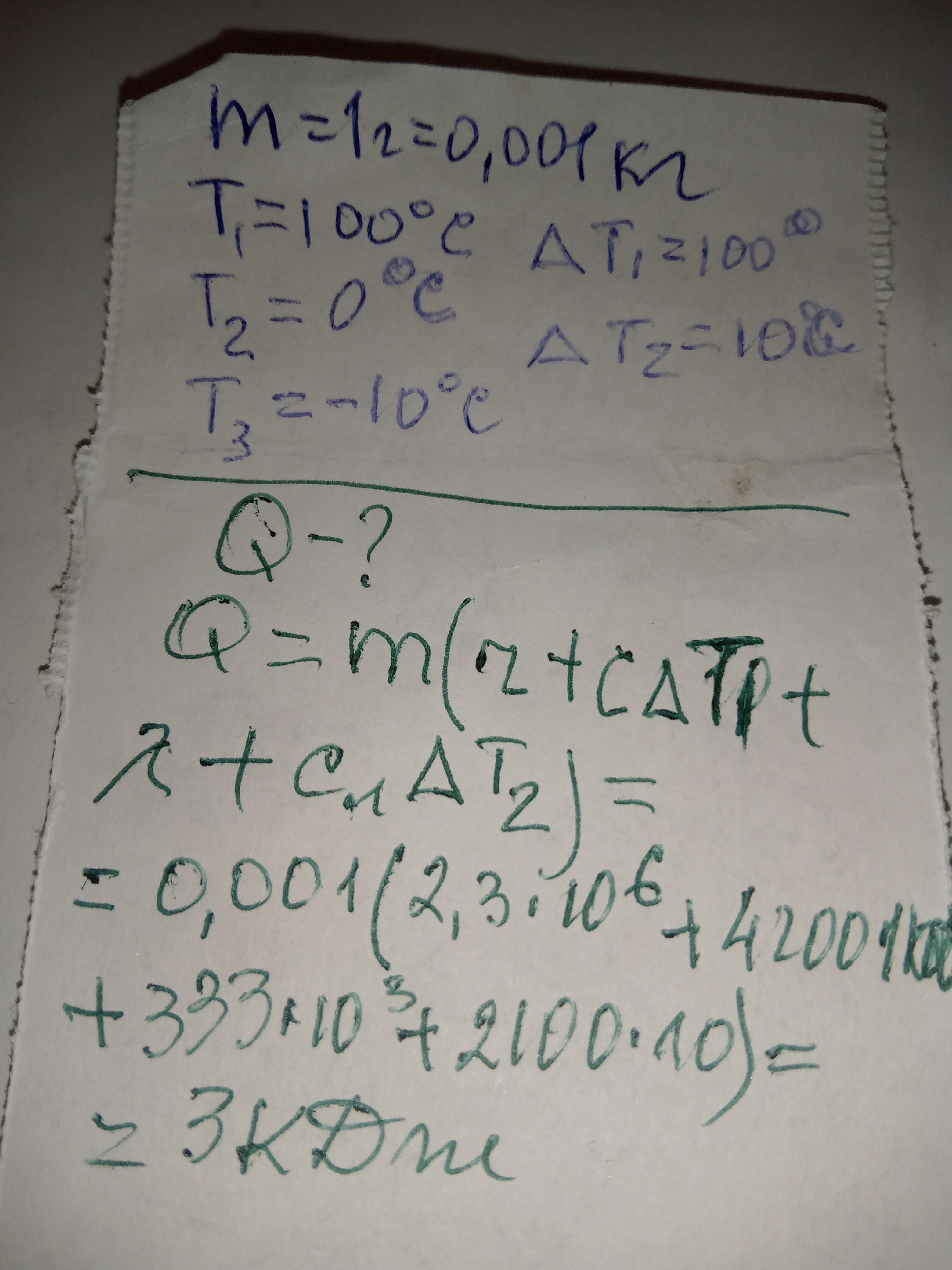 Скільки енергії виділяється під час перетворення 1 г водяної пари, температура якої 100 градусів Цельсія, на кристалик льоду за температури -10 градусів Цельсія?
