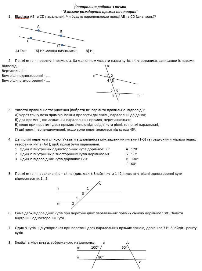 2. Відповідні кути 2,6 ; 1,5 ; 4,8 ; 3,7