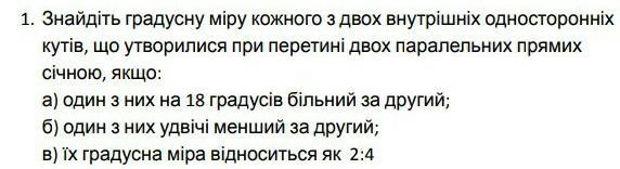 сума внутрішніх односторонніх кутів при паралельних прямих 180°.