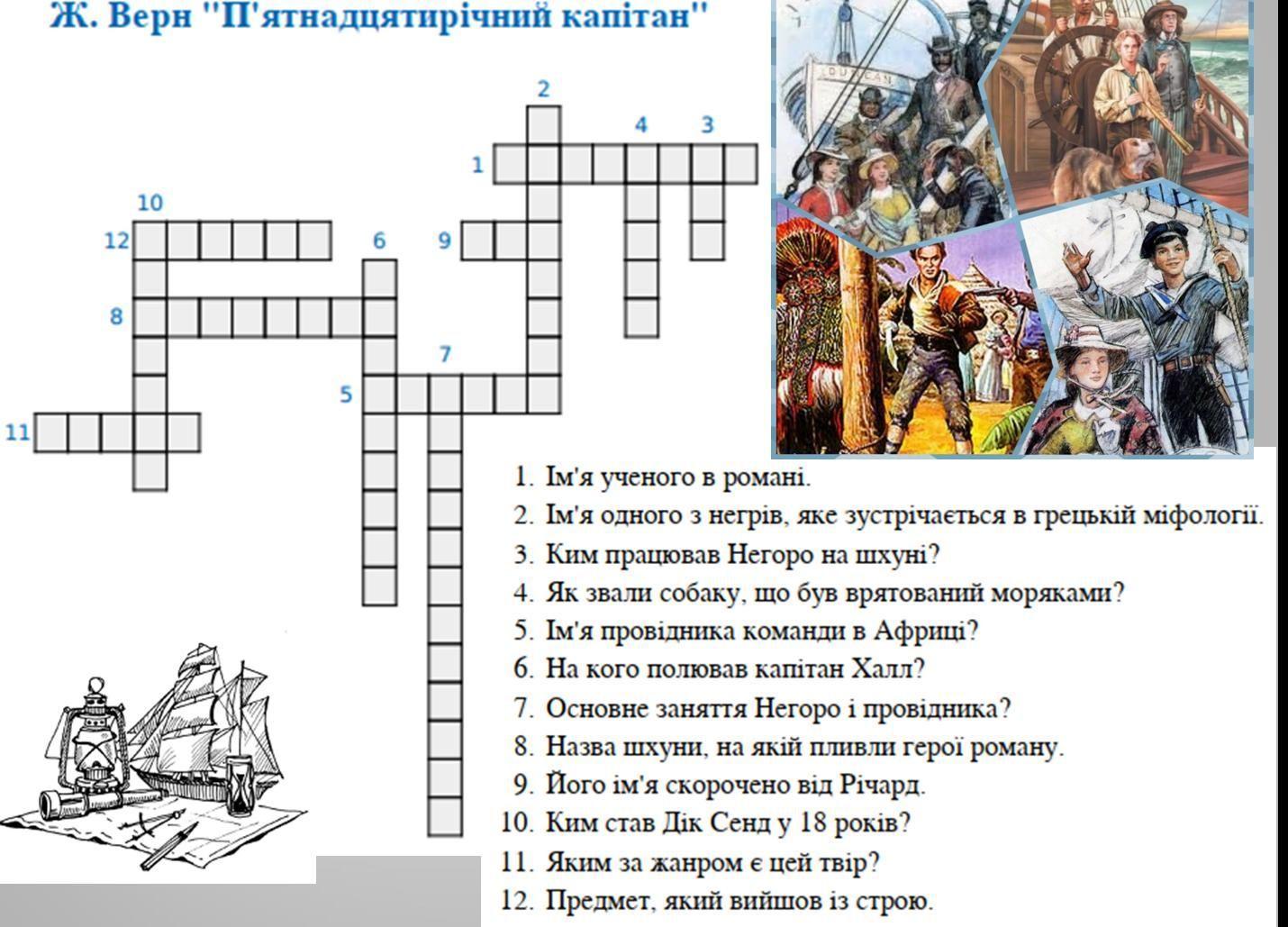 1 Бенедикт 2 Геркулес 3 Кухарем 4 Дінго 5 Дік Сенд (напевно) 6 на китів 7 Работоргівля 8 Пілігрим 9 Дік 10 Капітаном 11 Пригодницький роман 12 Компас