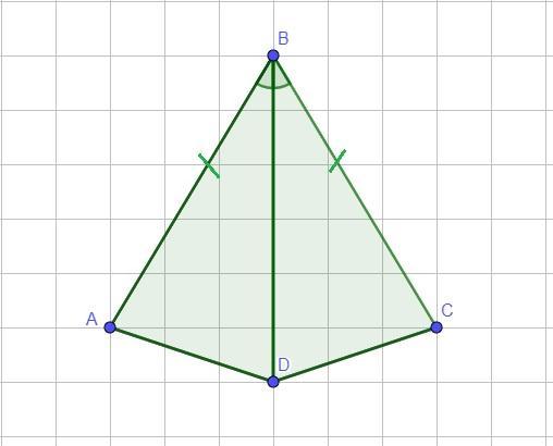 ВD – бісектриса кута АВС. АВ = СВ. За якою ознакою рівні трикутники АВD і СВD?
