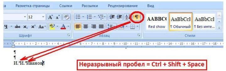 Який символ треба використовувати в ms word, щоб заборонити відокремлення iнiцiалiв вiд прізвища?