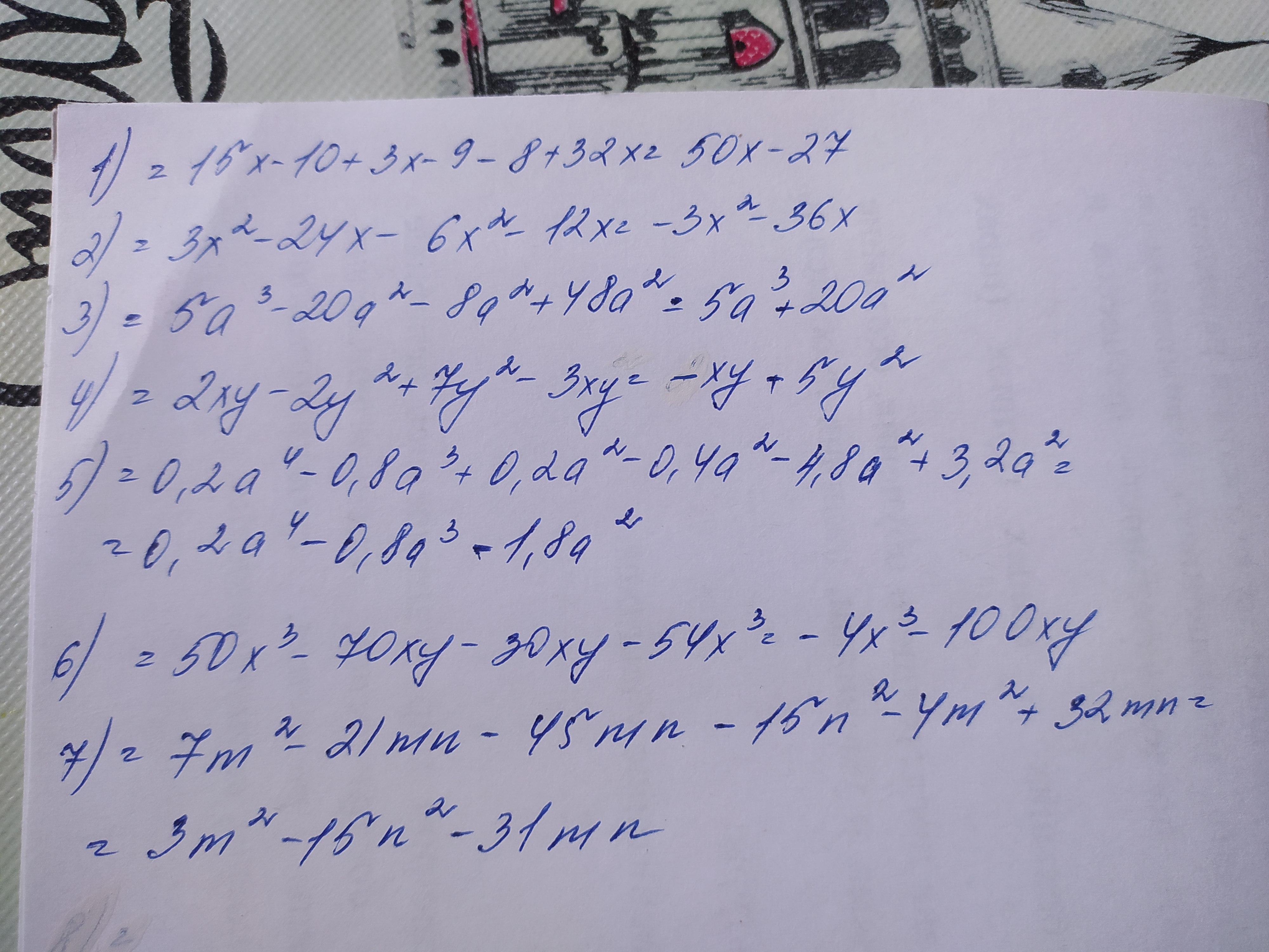 7) 7m (m-3n)-15n (3m+n)+4m (-m +8n);