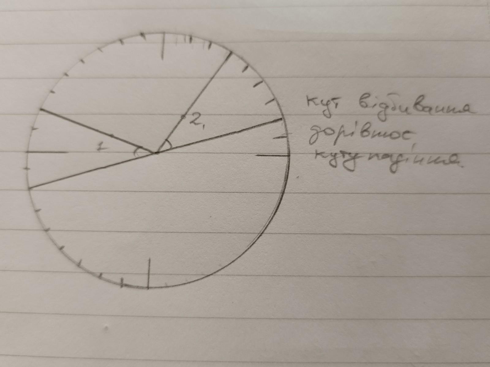 падає на дзеркало, та відбитий промінь 2. Накресліть, як