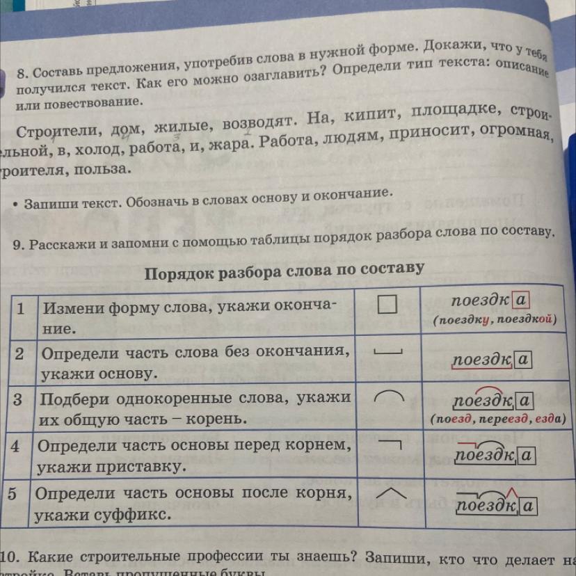 9. Расскажи и запомни с помощью таблицы порядок разбора слова по составу.