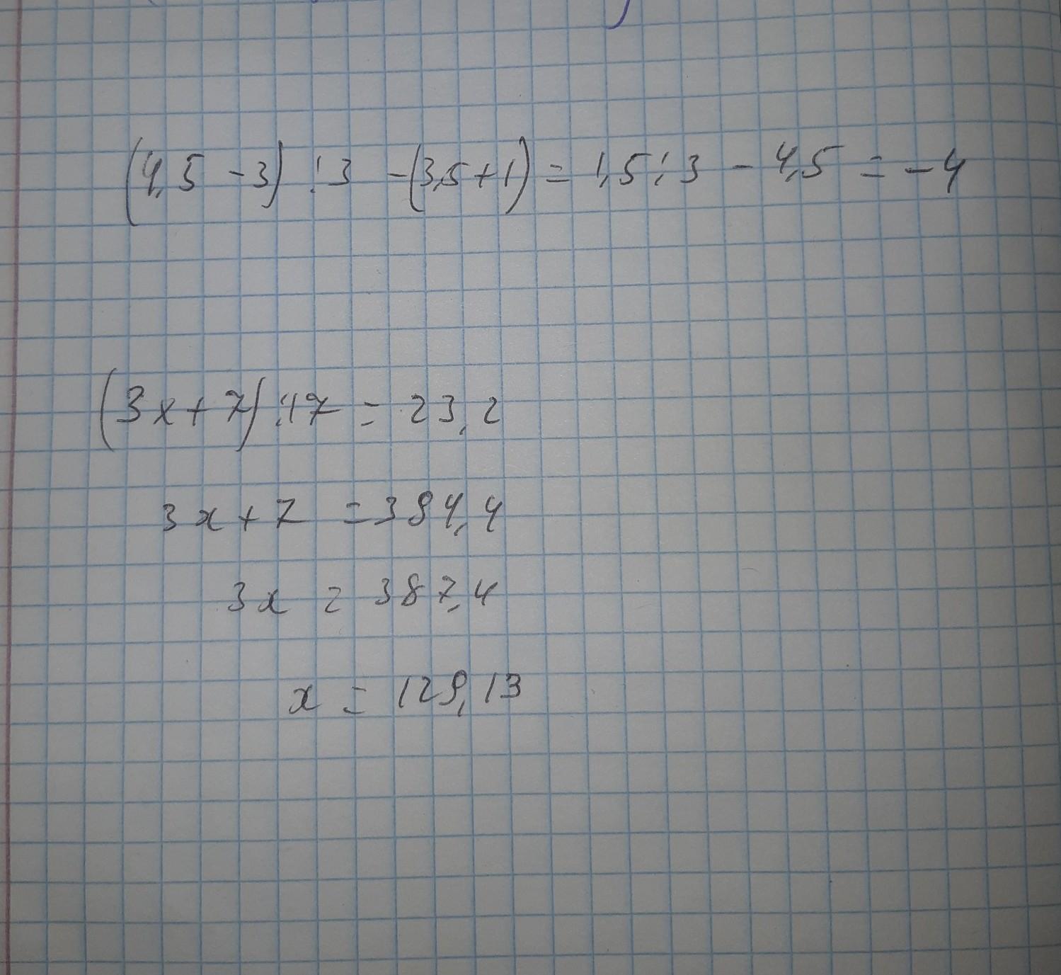 7.Розв’яжіть рівняння (3x + 7):17 = 23. 2 8.Виконайте дії: (4,5 - 3): 3 - (3,5 + 1).