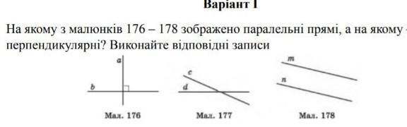 на якому з малюнків 176 178 зображено паралельні прямі а на якому перпендикулярні виконайте відповідні записи