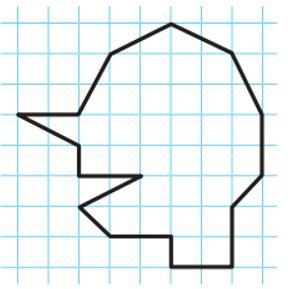 1. Перемалюй в зошит малюнок та знайди його площу в одиничних квадратах. Побудуй пряму і відповідне симетричне зображення відносно цієї прямої.
