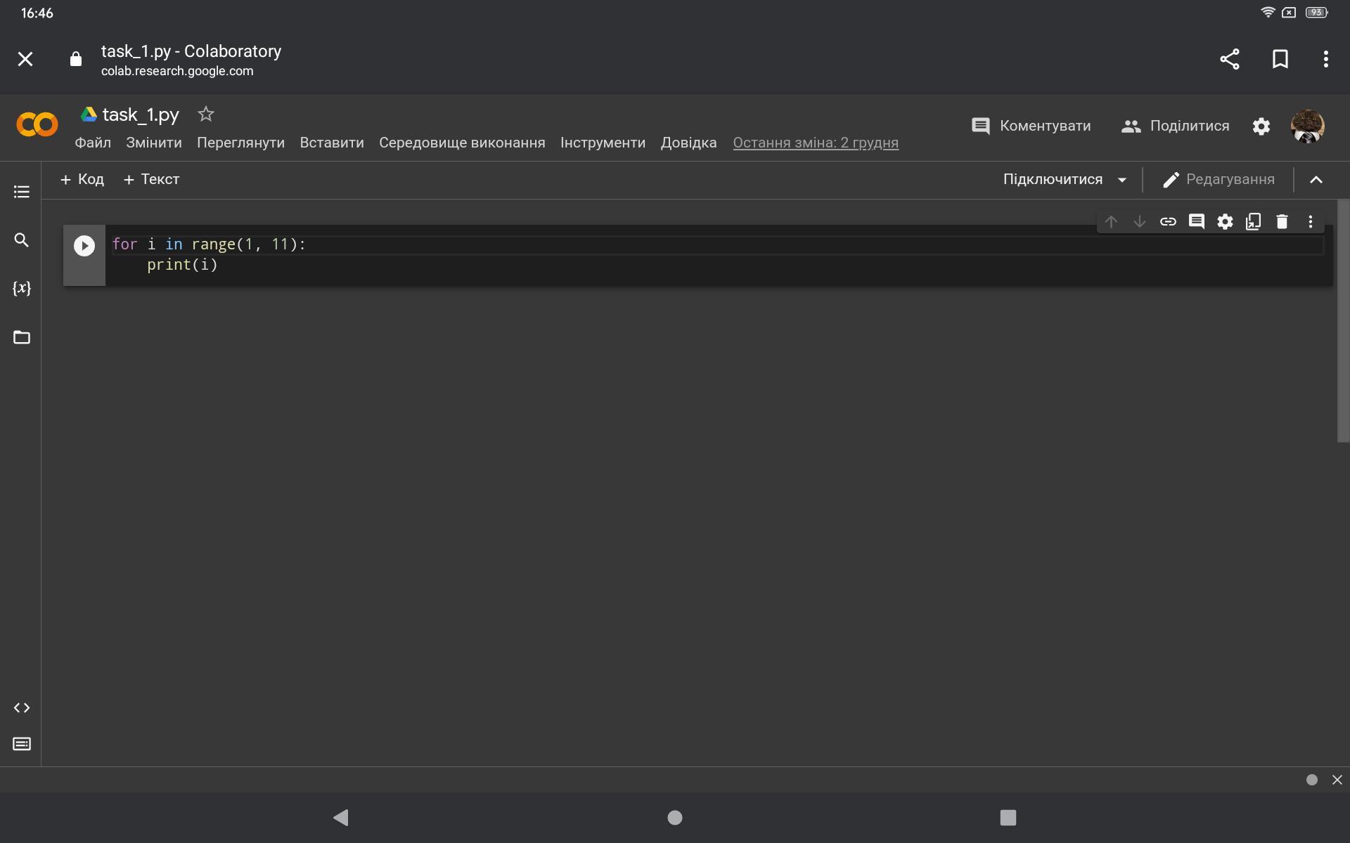 Написати програму використовуючи цикл "for" для виведення в рядок задані цифри В КОДІ, наприклад від 5 до 17 без змін.