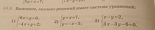 24.8. Выясните, сколько решений имеет система уравнений: 6x+y=0,-4х +у=2 быстрее пожалуйста мыжиье дать объяснение в 1