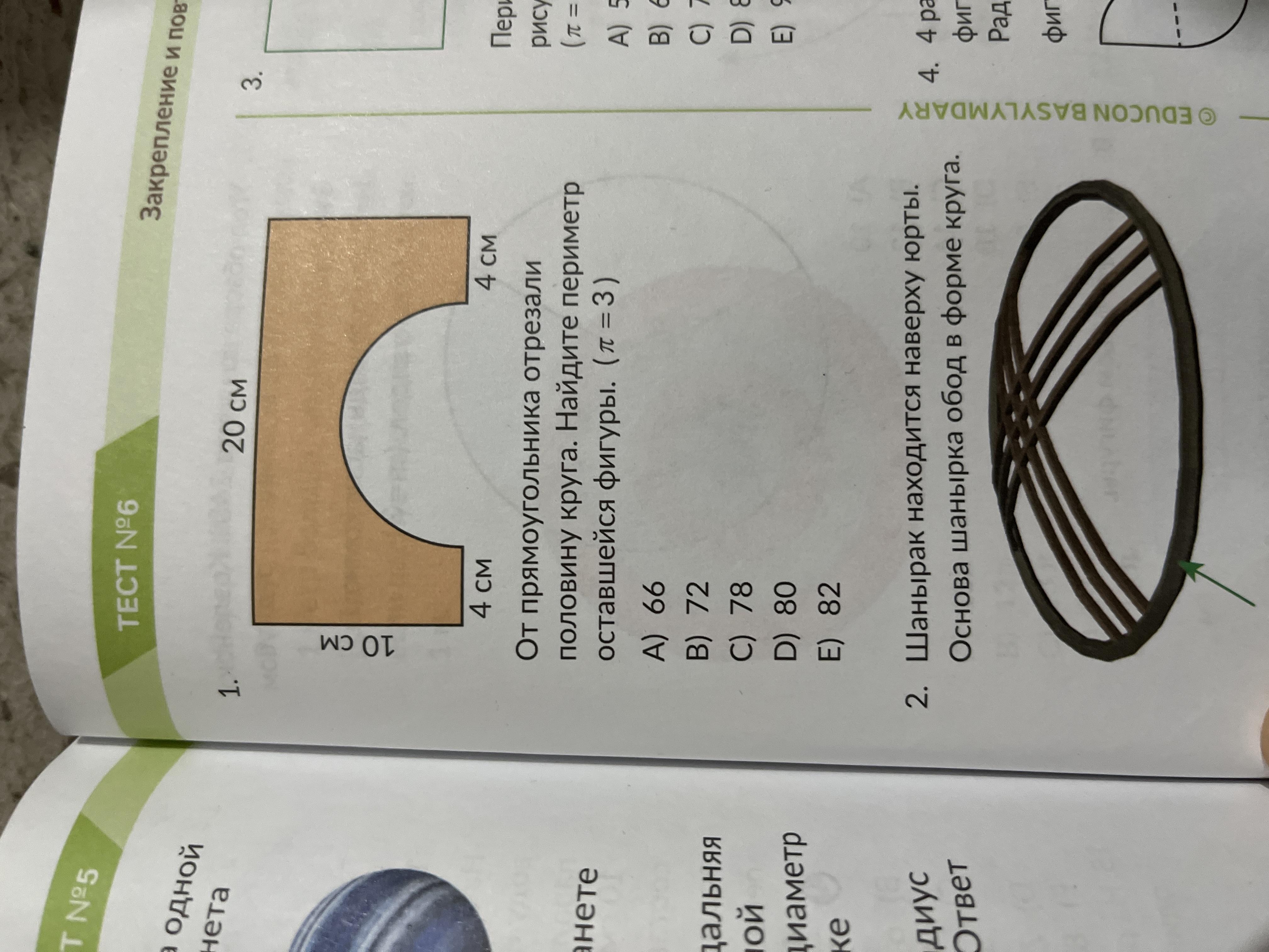 Диаметр полуокружности d = 20 - (4+4) = 20 - 8 = 12см ,тогда , длина полуокружности , следовательно, уже периметр данной фигуры P = 10 • 2 + 20 + 4 • 2 + 18 = 48 + 18 = 66(см)