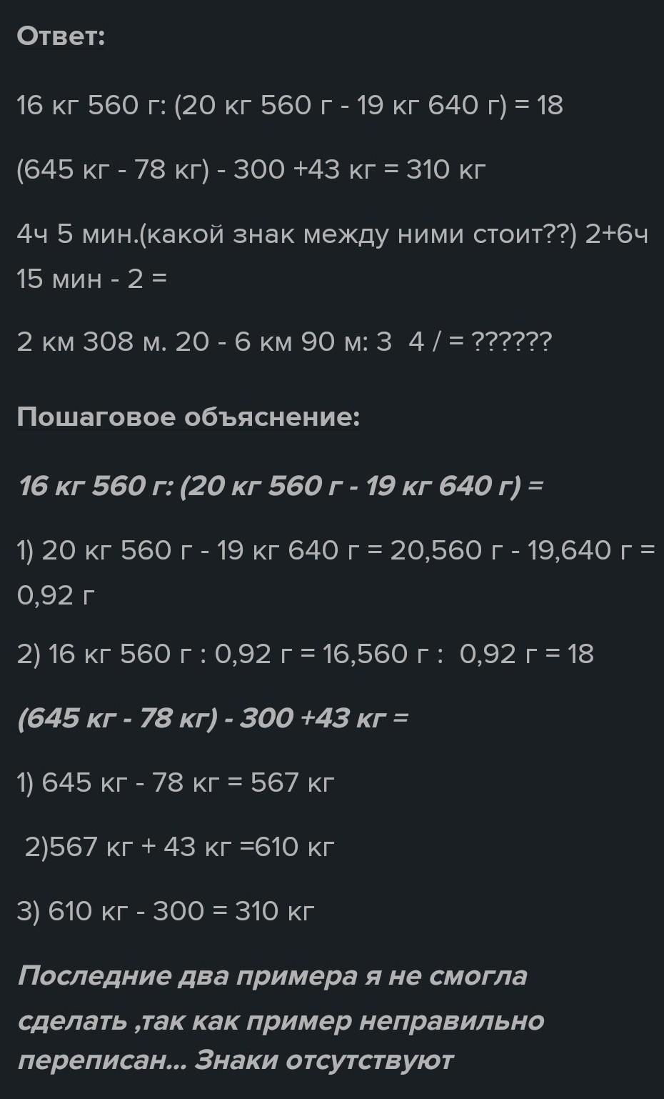 РАБОТА В ПАРЕ Вычисли, столбиком 16 кг 560 г: (20 кг 560 г - 19 кг 640 г (6 ц 5 кг - 78 кг). 300 + 4 т 3 кг 4 ч 5 мин - 2 + 6 ч 15 мин-2 2 км 308 м -20 - 6 км 90 м: 3 M