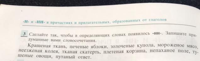 Крашенная ткань,печенные яблоки,золоченные купола,мороженное мясо,неезженная колея,тканная скатерть,плетенная корзина,непаханное поле,тушенные овощи путанный ответ