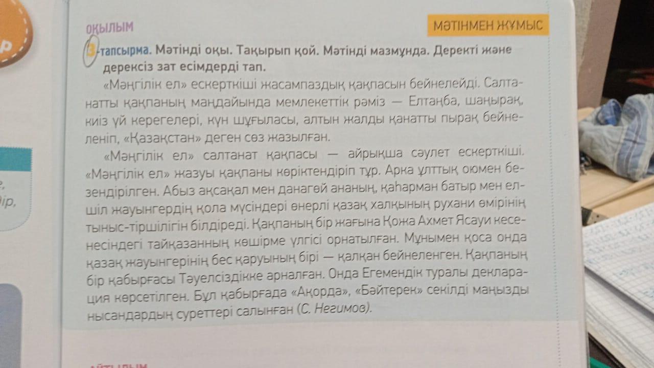Мэтінді окы. Такырып кой. Мэтінді мазмунда. Деректі жене дерексіз зат есімдерді тап.