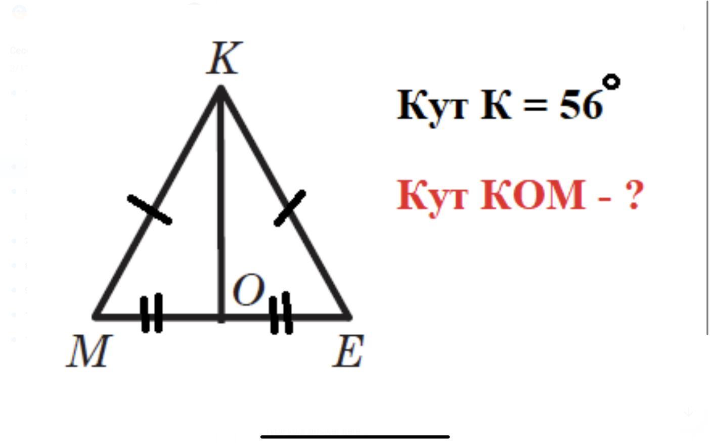 Начебто ∠КОМ=90°, оскільки КО- висота рівнобедреного трикутника.