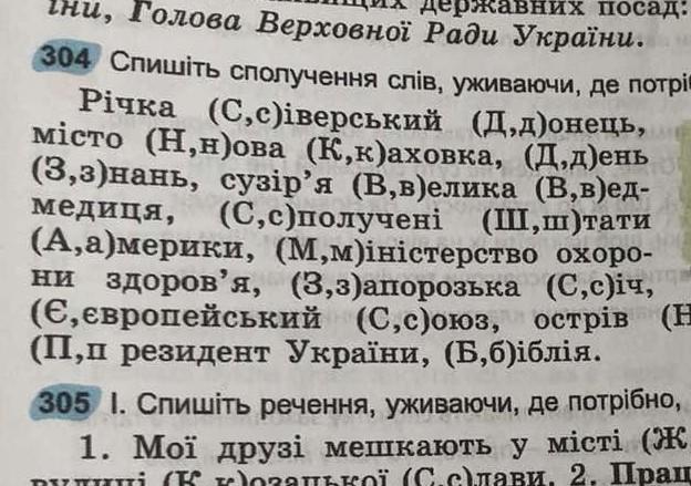 Спишіть сполучення слів, уживаючи, де потрібно, велику букву. Річка (С,с)іверський (Д,д)онець, місто (Н,н)ова (К,к)аховка, (Д,д)ень (3,3)нань, сузір'я (В,в)елика (В,в)ед- медиця, (С,с)получені (Ш,ш)тати (А,а)мерики, (М,м)іністерство охоро- ни здоров'я, (3,3)апорозька (С,с)iч, (Є, Європейський (С,с)оюз, острів (Н,н)ова (г,г)вінея, (П,п резидент України, (Б,б)iблiя.