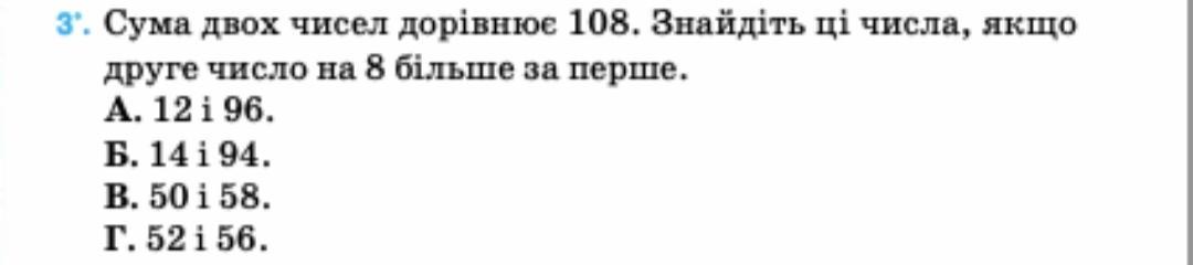 Пошаговое объяснение: x+x+8=108 2) 108-50=58