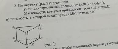 в)прямая МN лежит в плоскости АА1С1, а прямая KN в плоскости ВСС1
