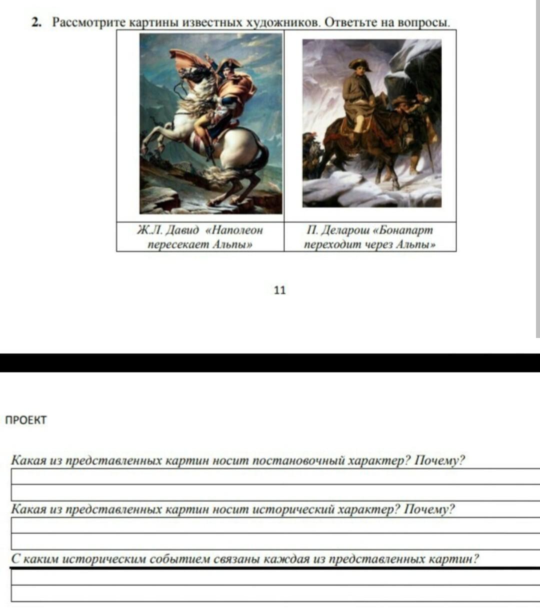 1)Какая из представленных картин носит постановочный характер? Почему? 2)Какая из представленных картин носит исторический характер? Почему? 3)С каким историческим событием связаны каждая из представленных картин,