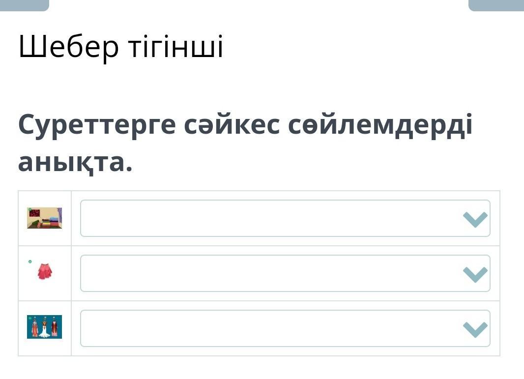 Ответ: Шебер бірінші матаның түрлерін, бір-бірімен үйлесетін-үйлеспейтін ажырата алады.
