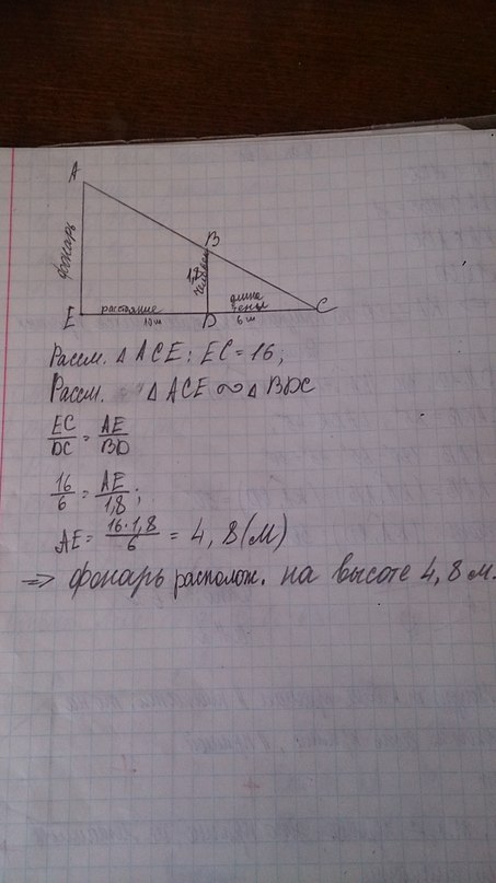 1.Человек ростом 1,8 м стоит на расстоянии 10 шагов от столба, на котором висит фонарь.Тень человека равна шести шагам. На какой высоте (в метрах) расположен фонарь?