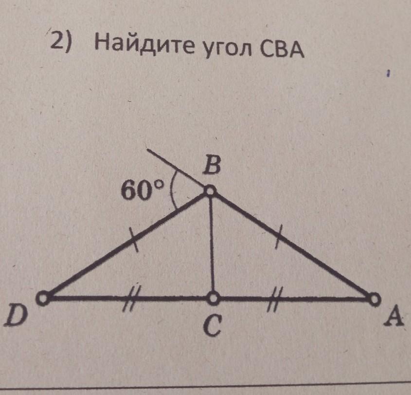 2) Найдите угол СВА D 60° итого B кактрешить C A Дескрипторы Применяет определение внешнего угла треугольн Находит углы треугольника Применяет свойство равнобедренного треугол Находит угол СВАк как найти угол сва