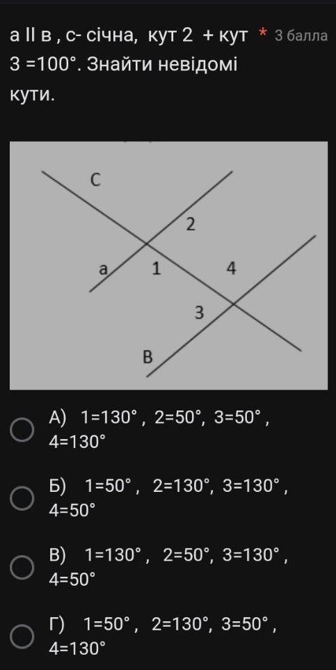 B) 1=130°, 2=50°, 3=130°, 4=50°