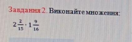 2 2/15 будет 32/15, 1 9/16 будет 25/16 , умножаем их и выходит 10/3 , а это 3 целых 1/3