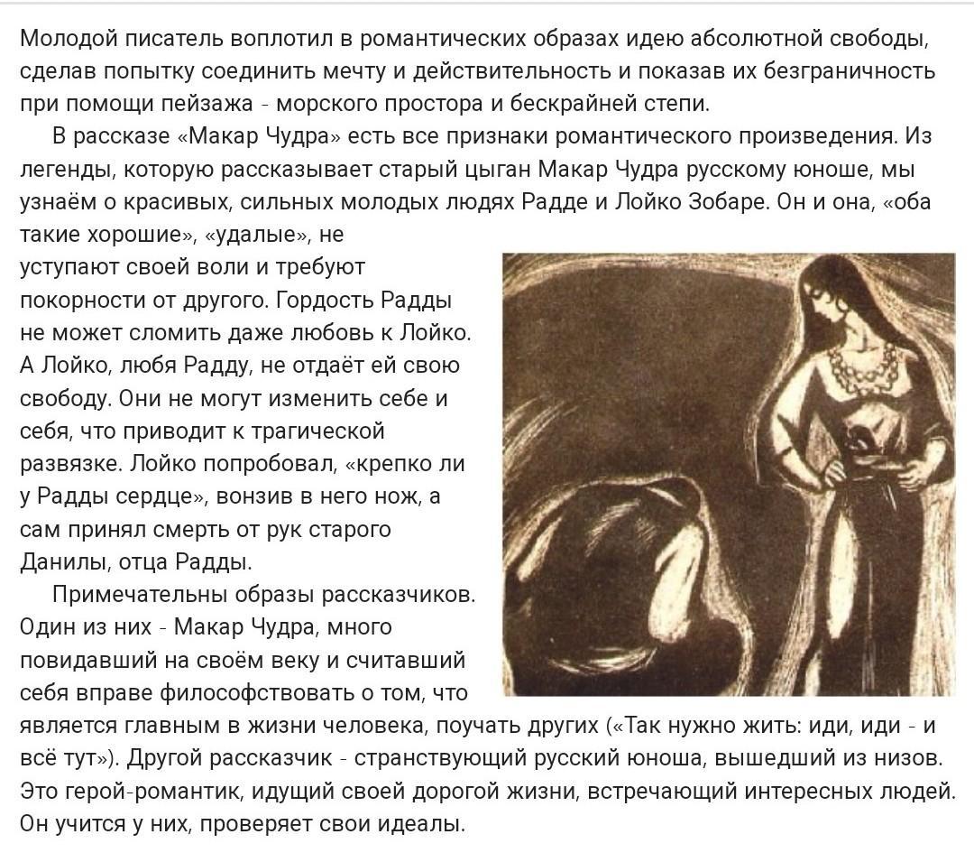 Неразрешимое противоречие между Раддой и Лойко — любовью и гордостью, по мнению Макара Чудры, может разрешиться только смертью. И герои отказываются от любви, счастья и предпочитают погибнуть во имя воли и абсолютной свободы.