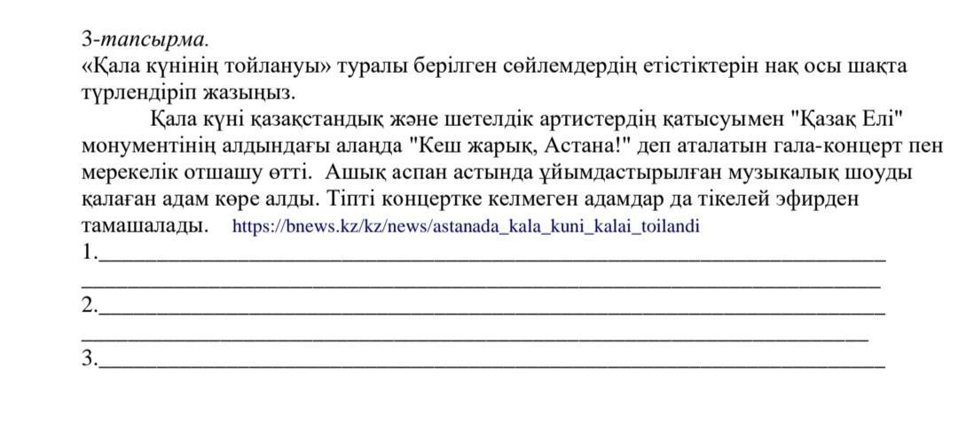 1.Дәл қазір Қазақ Елі монументінің алдындағы алаңда "Кеш жарық, Астана!" деп аталатын ғала-концерт өтіп жатыр