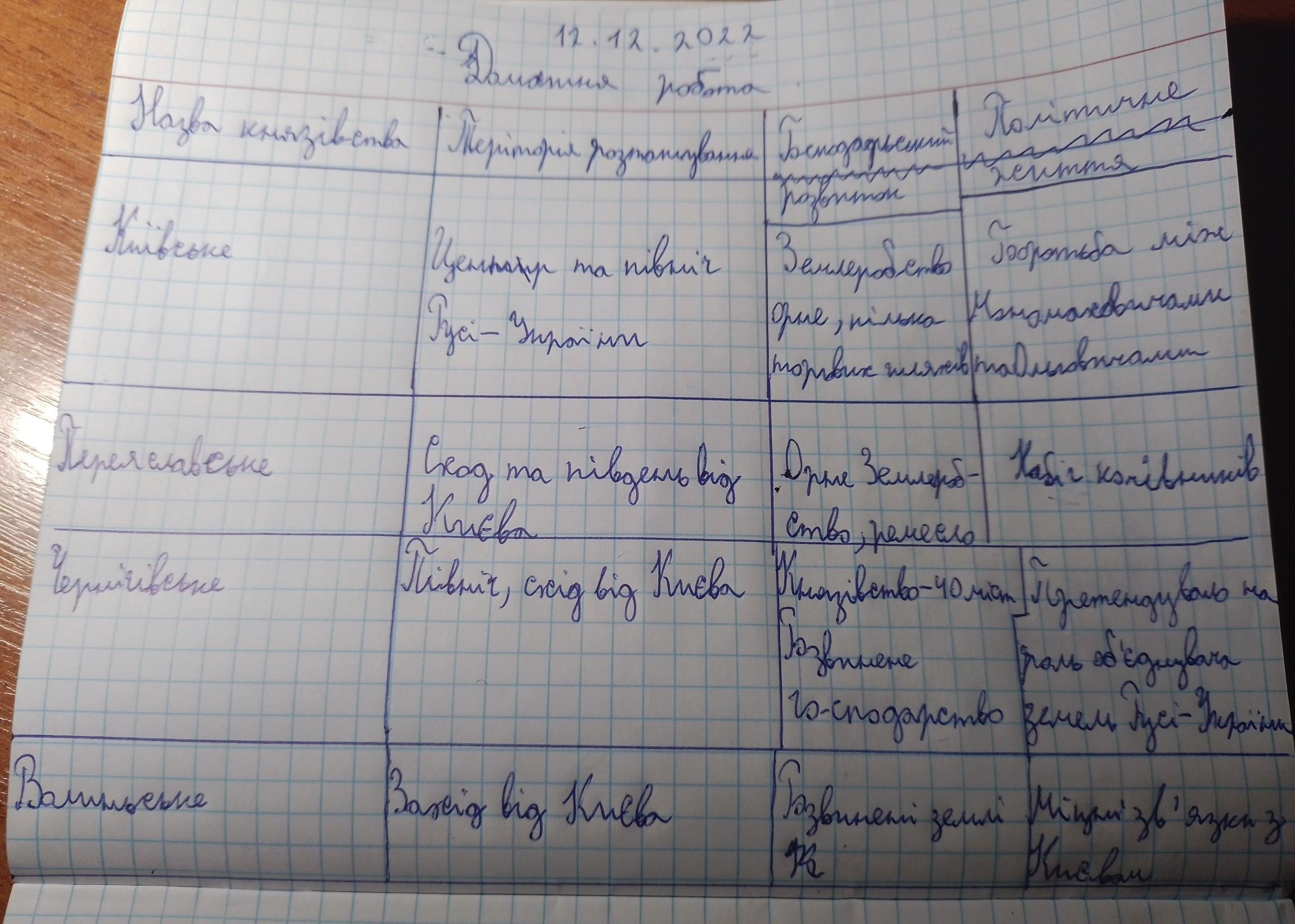 11. Складіть таблицю " розвиток руських князівств у часи дроблення Русі-України ".
