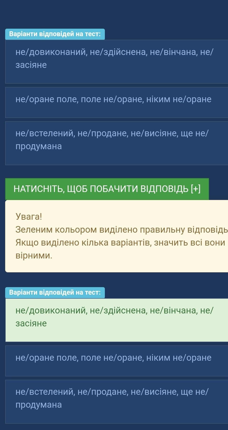 В не/довиконаний, не/здійснена, не/вінчана, не/засіяне