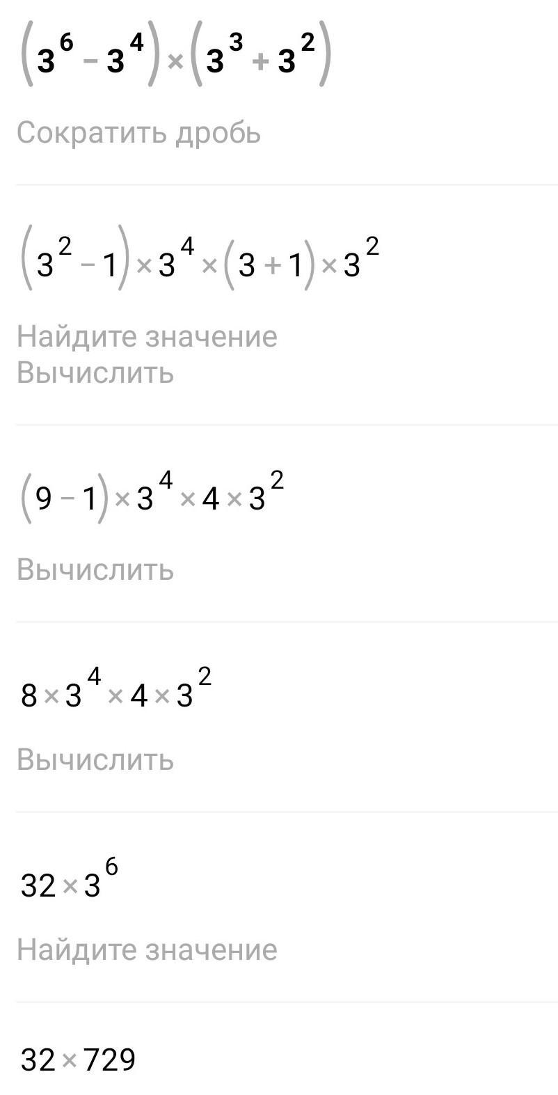 вначале вынести за скобку 3^4 после решить в скобке, дальше некоторое сокращается ответ 23328