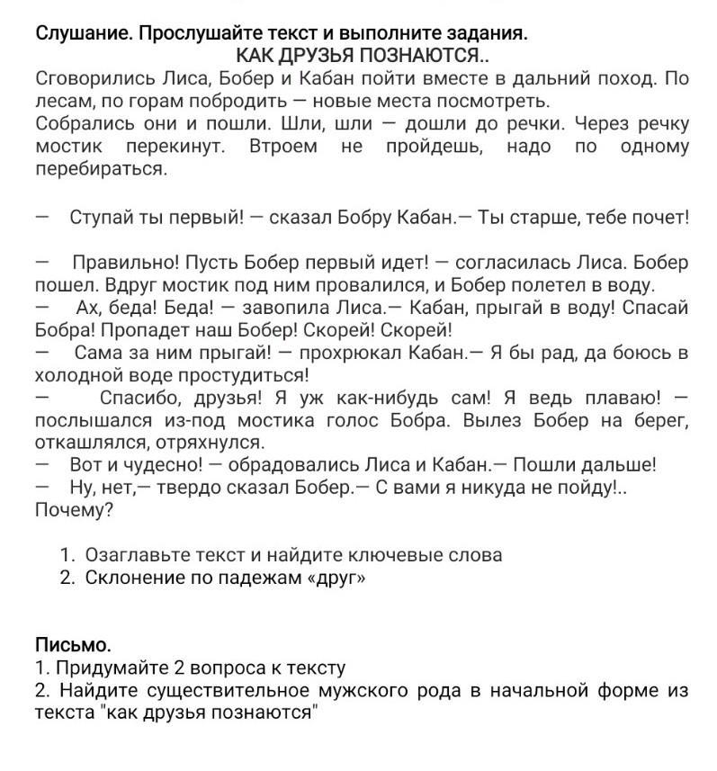 1. Ключ слова: Бобер, лиса речка, кабан, поход, друзья.