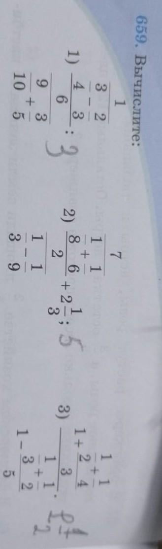 2) 3/4 : 3 = 3/4 * 1/3 = 3/12 = 1/4