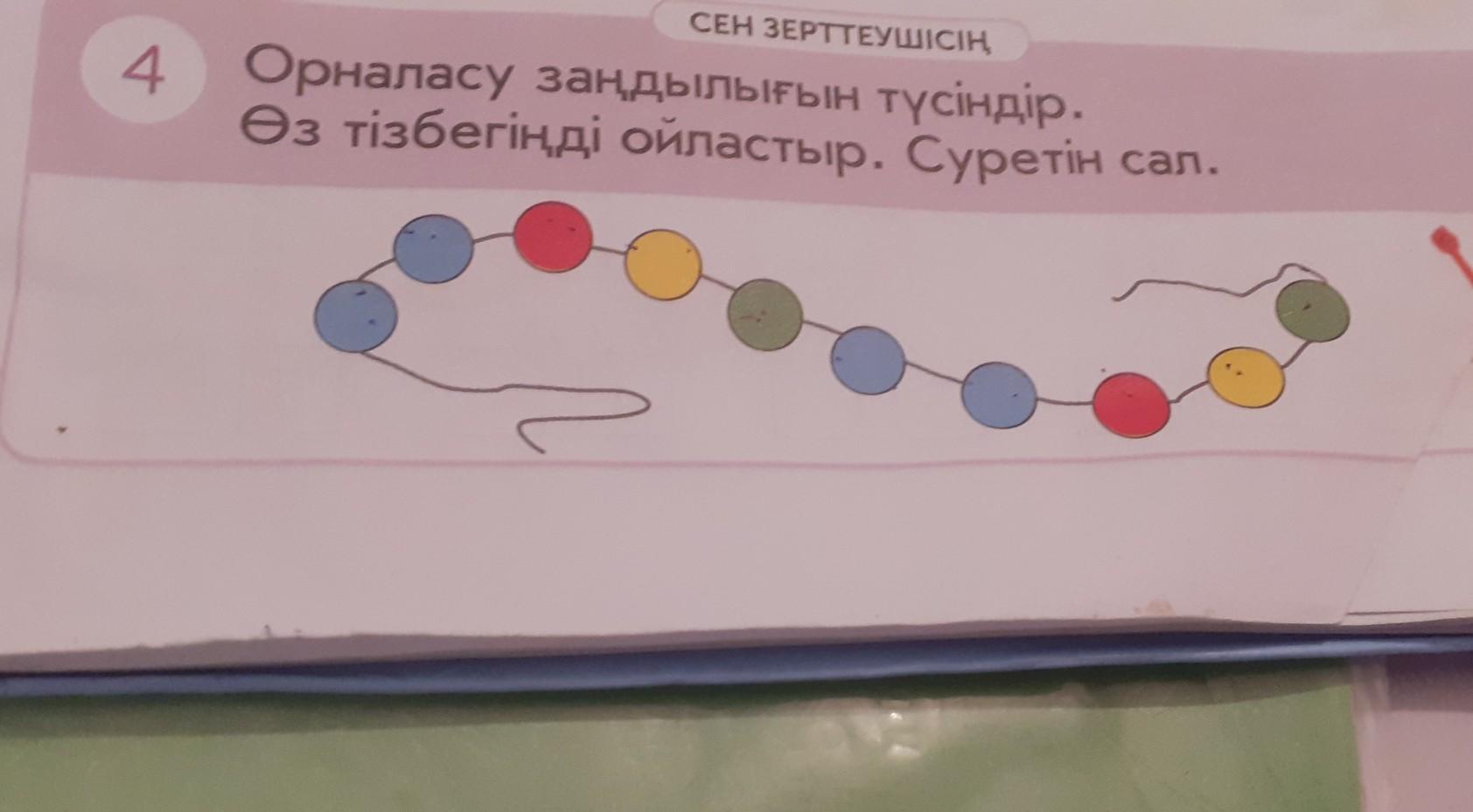 Тізбекті кез келген рет бойынша қоюға болады, мысалы : қызыл, қызыл, көк сары, қызыл, қызыл, көк, сары.....