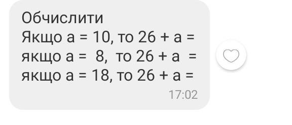 Обчислити Якщо а = 10, то 26 + а = якщо а = 8, то 26 + а = якщо а = 18, то 26 + а =