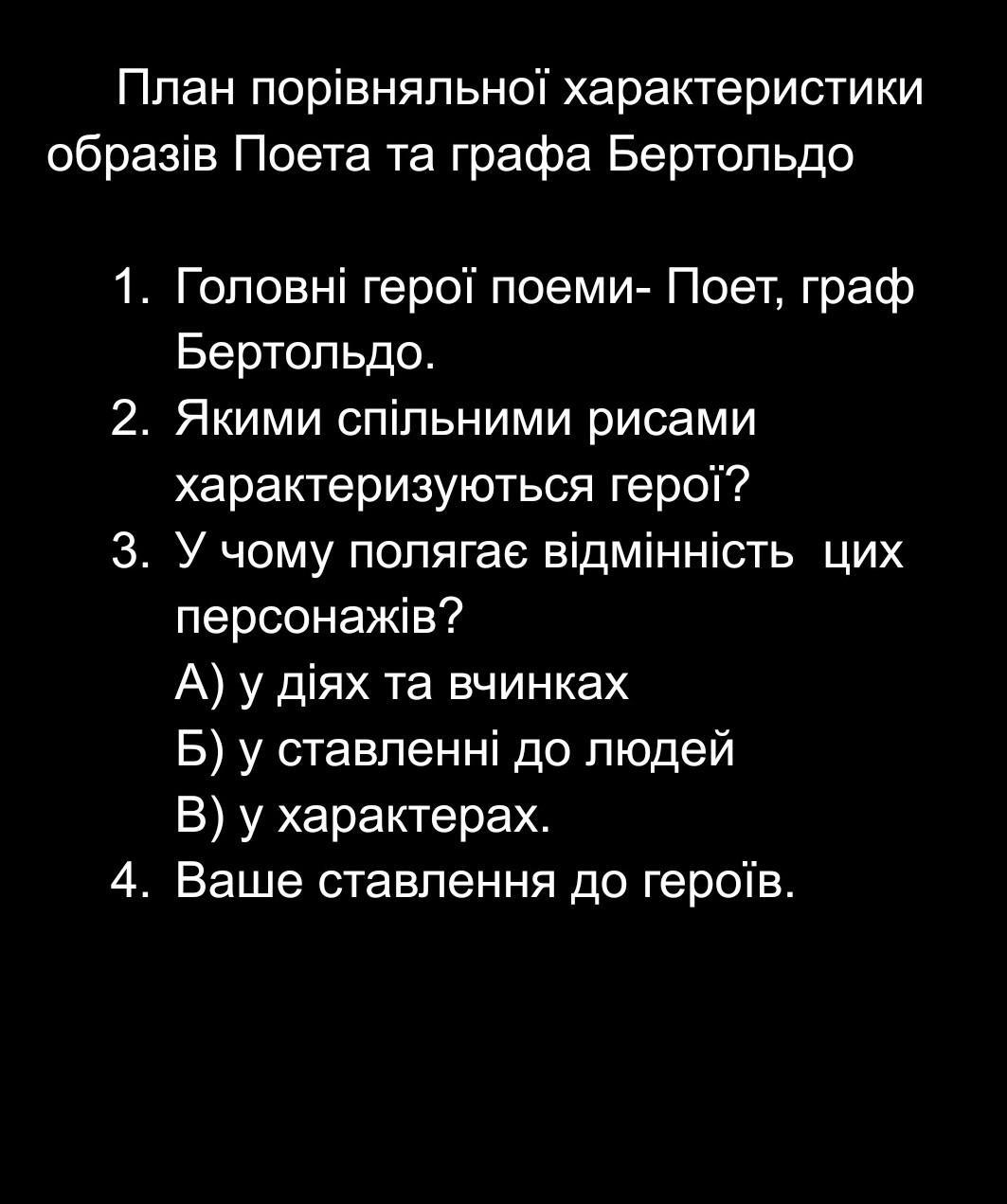 твір порівняльна характеристика образів поета та графа бертольдо 10+- речень!!