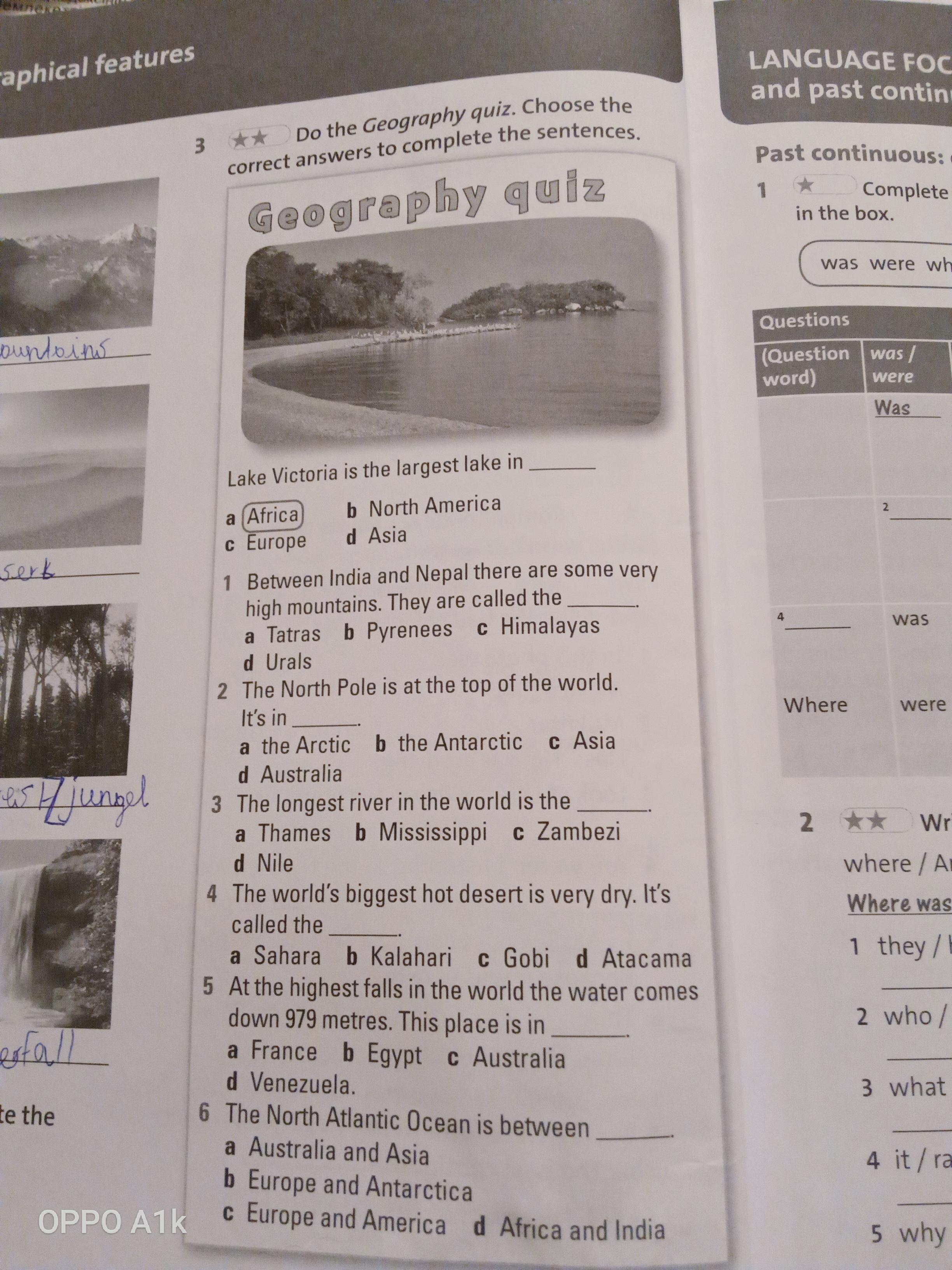 3* Do the Geography quiz. Choose correct answers to complete the sentences.
